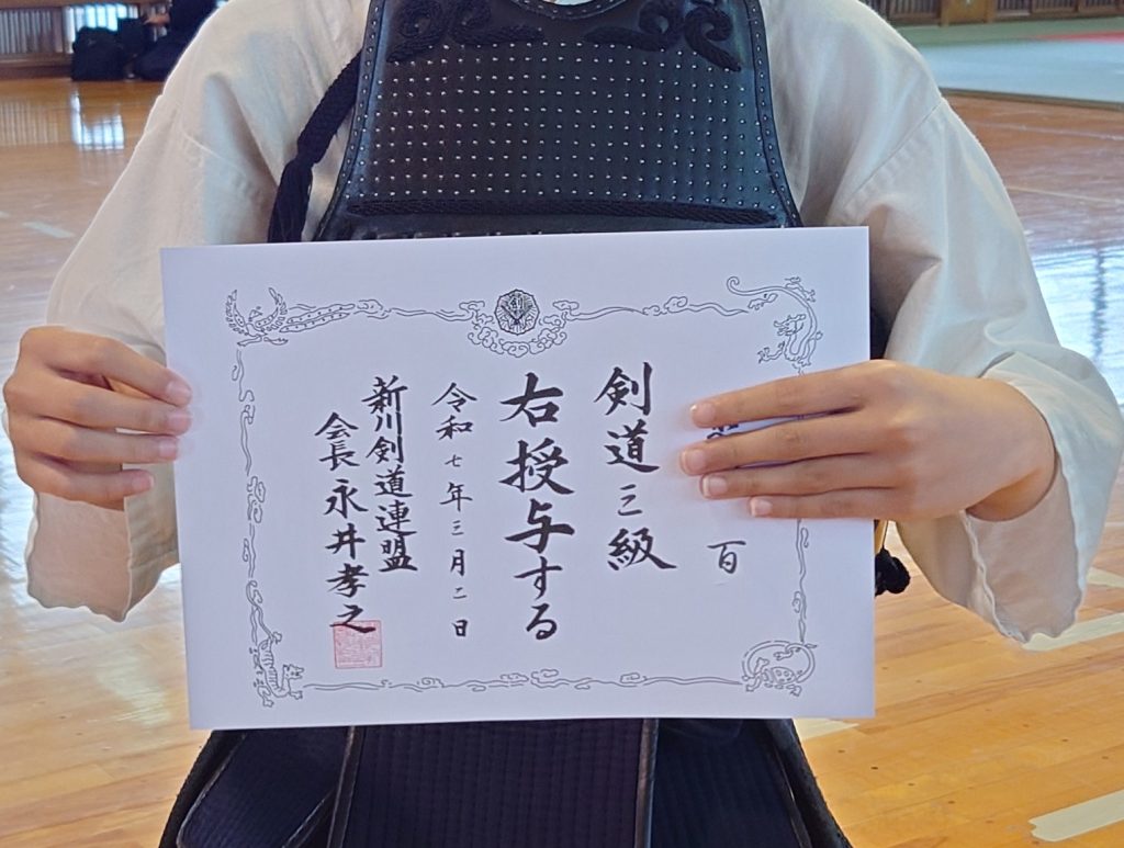 年に数回、剣道の上達度を認定する昇級審査会を行っております。